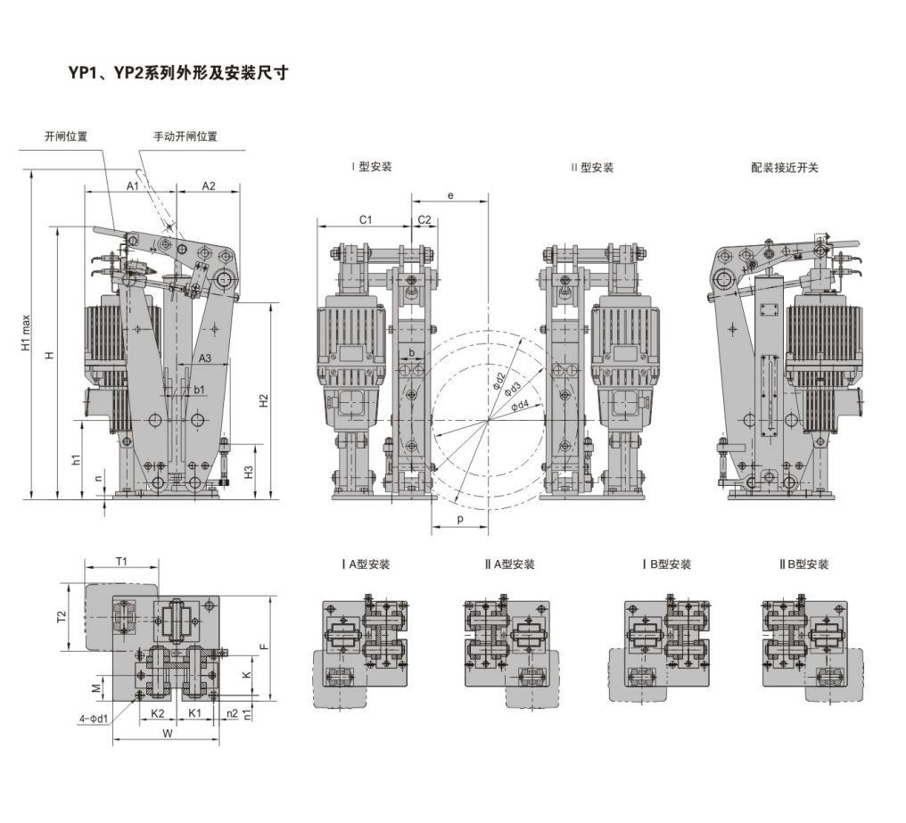 YP1.YP2.YP3系列電力液壓盤式制動(dòng)器是一種高性能、多功能的先進(jìn)產(chǎn)品。由于其具有瓦塊退距自動(dòng)均等,襯墊磨損自動(dòng)補(bǔ)償?shù)认冗M(jìn)功能,使用過(guò)程中維護(hù)非常便捷。通過(guò)增設(shè)各種限位開(kāi)關(guān),可給主機(jī)PLC提供所需要的聯(lián)鎖保護(hù)信號(hào)。非常適合各種現(xiàn)代的大型裝卸機(jī)械、起重運(yùn)輸機(jī)械、冶金設(shè)備、礦山設(shè)備及工程機(jī)械中各種機(jī)構(gòu)的減速和維持(停車)制動(dòng)。